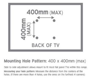 -During installation, the brackets adjust from side to side to perfectly fit TVs sized between 23-42 inches.